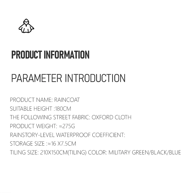Jiangxi XIAOKONGLONG rainproof Products Co., Ltd.Own subsidiaries and brands such as zituoling clothing, xiaokonglong rainproof. is an innovative enterprise specializing in R & D, design, production and sales of healthy and fashionable raincoats, rainproof clothes,ponchos, outdoor clothes,Umbrella end tent. It has a plant area of nearly 10000 square meters and an annual output of about 3 million raincoats.