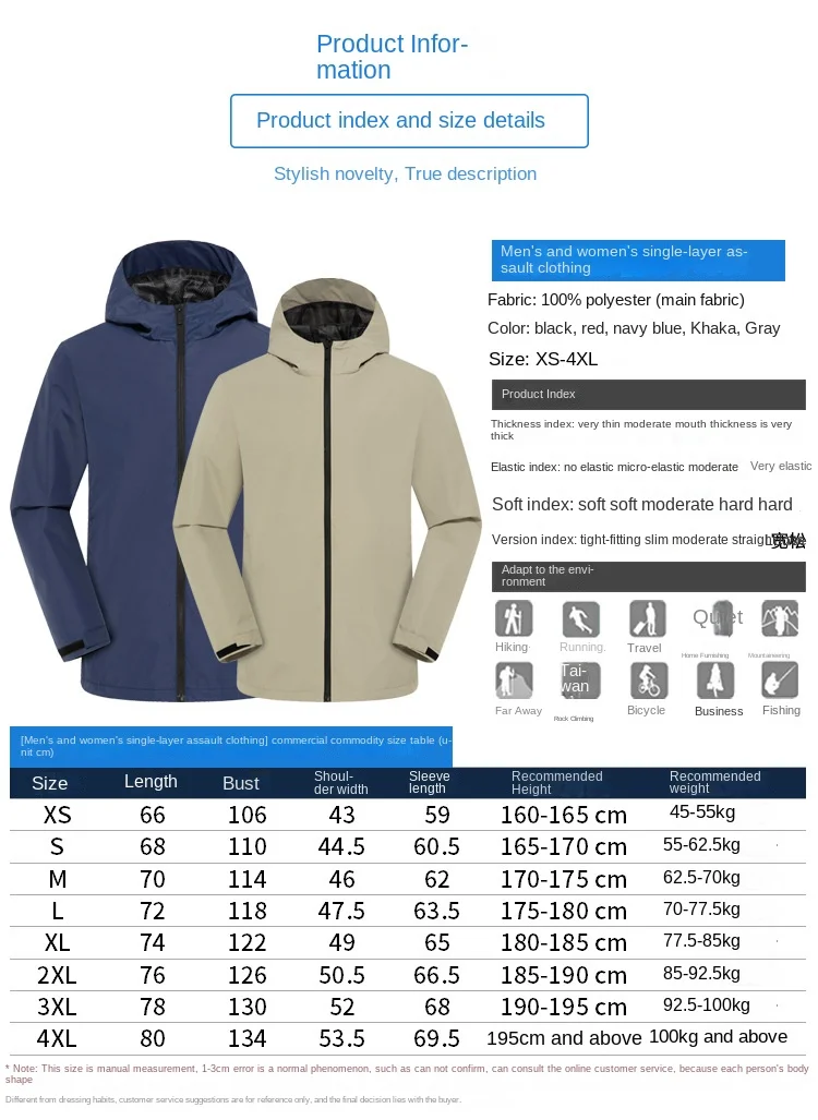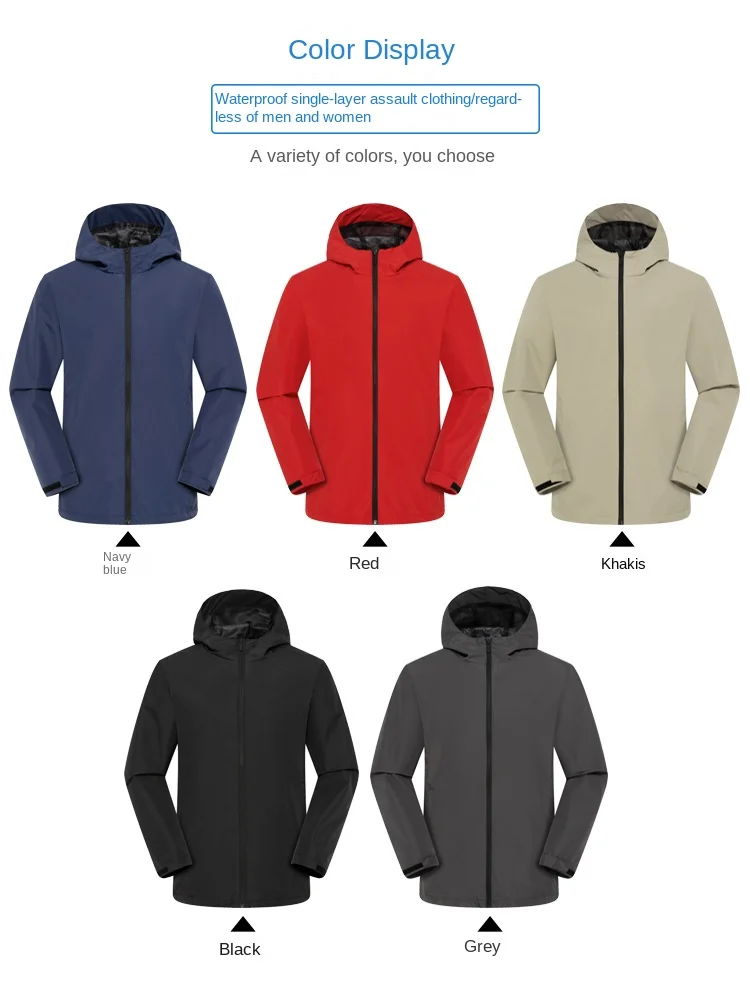 Single-Layer Waterproof Outdoor Jacket for Men Women Long Sleeve Coat for Spring Autumn Print Logo for Mountaineering Assault