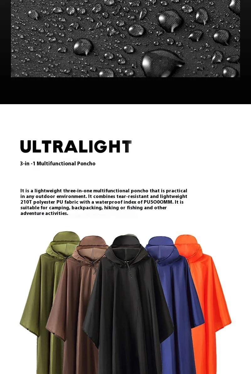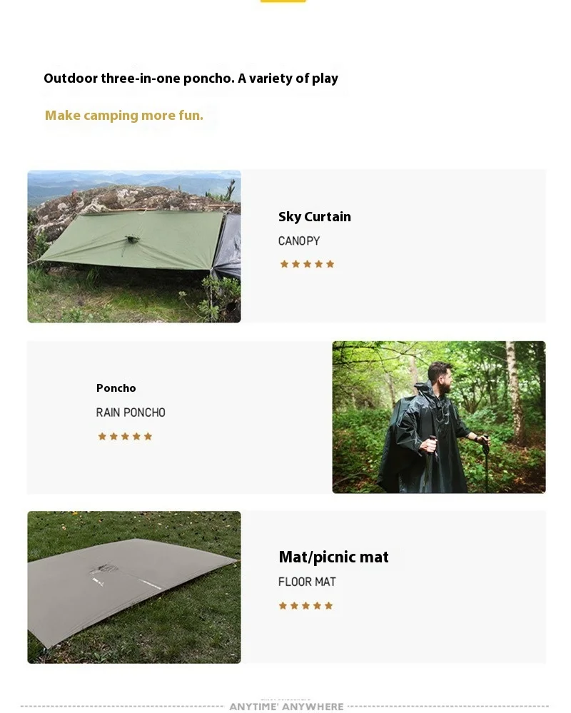 Three-in-One Multifunctional Cross-Border Cape Raincoat Stand Canopy Mat Poncho Thin for Mountaineering Hiking Factory Direct