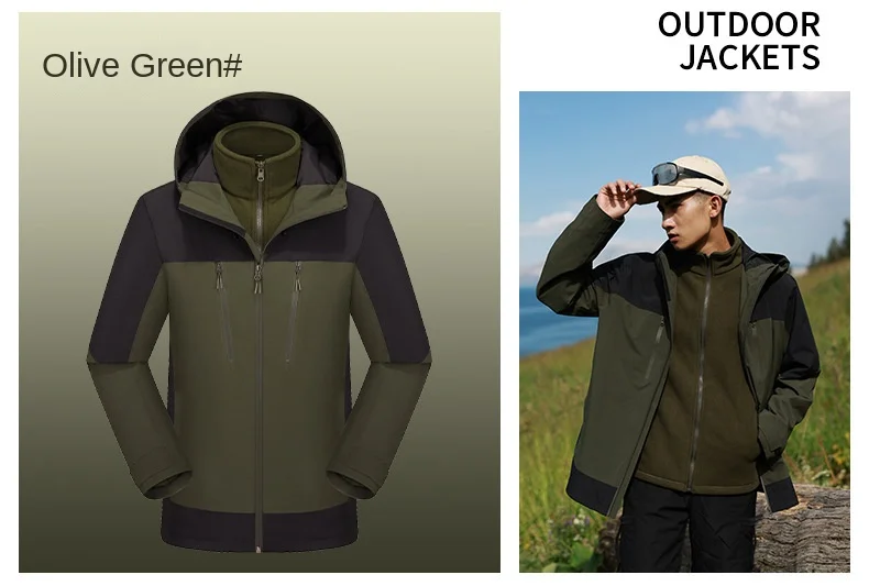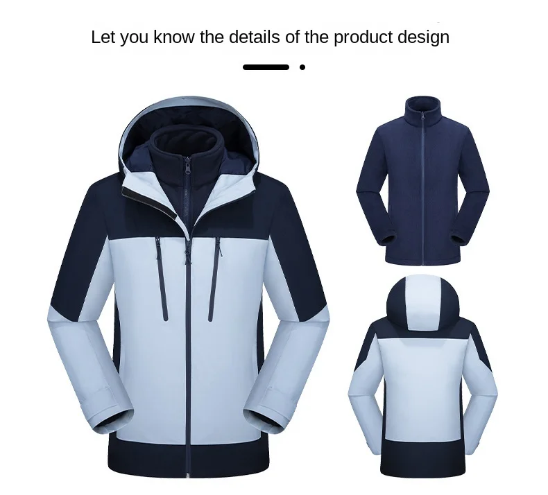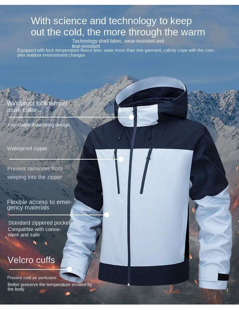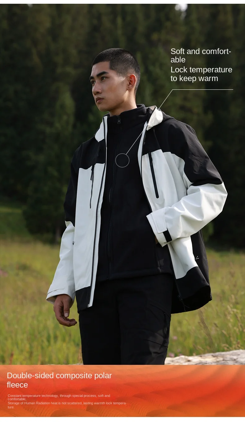 Three-in-One Outdoor Suit for Men Women Waterproof Windproof Warm Mountaineering Camping Hiking Jacket