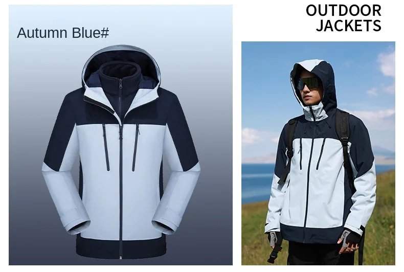 Three-in-One Outdoor  Suit for Men Women Waterproof Windproof Warm Mountaineering Camping Hiking Jacket