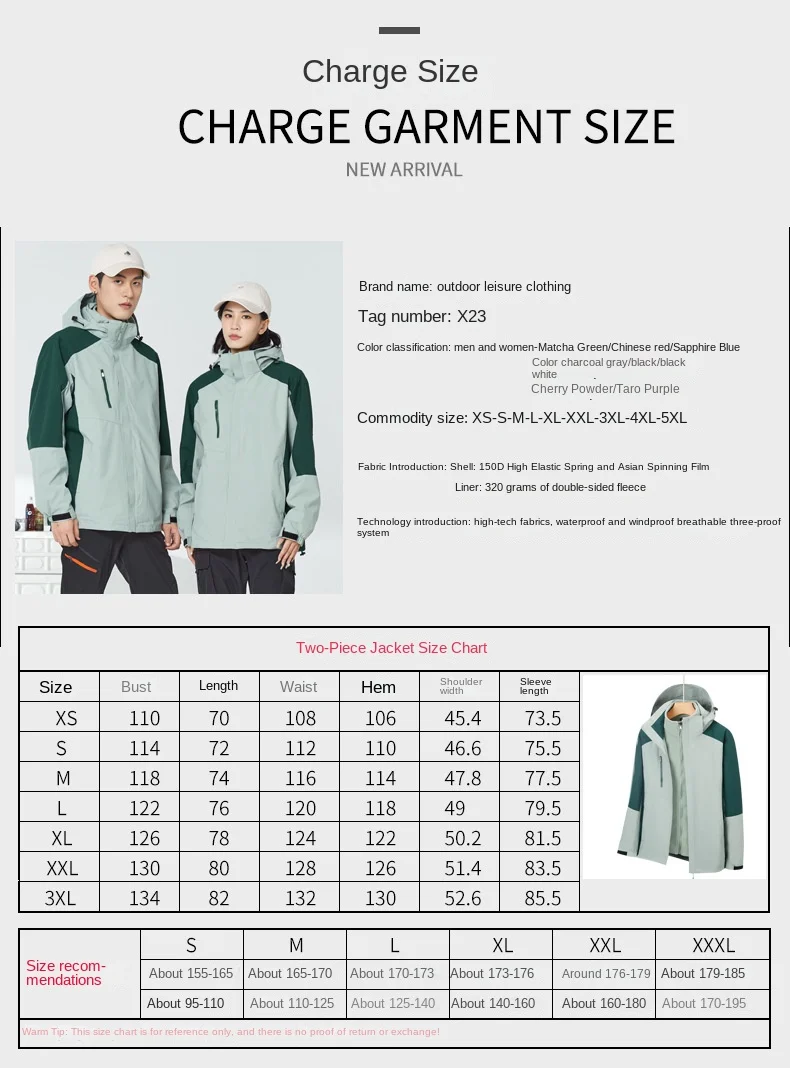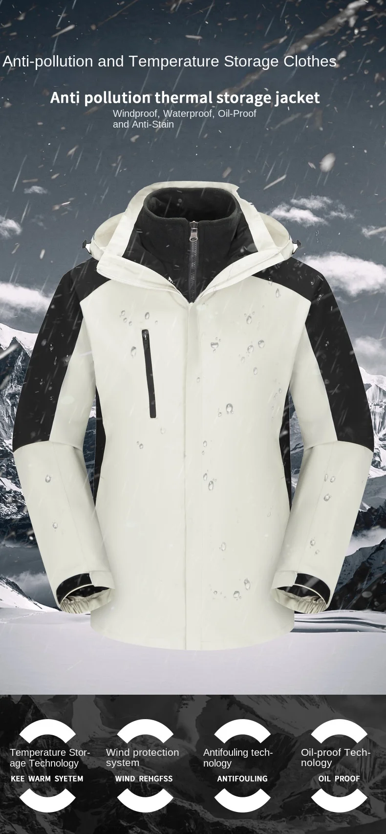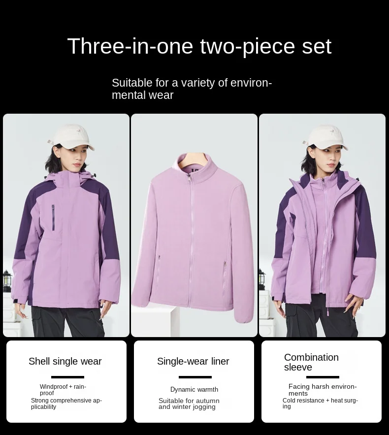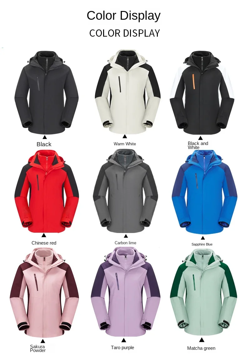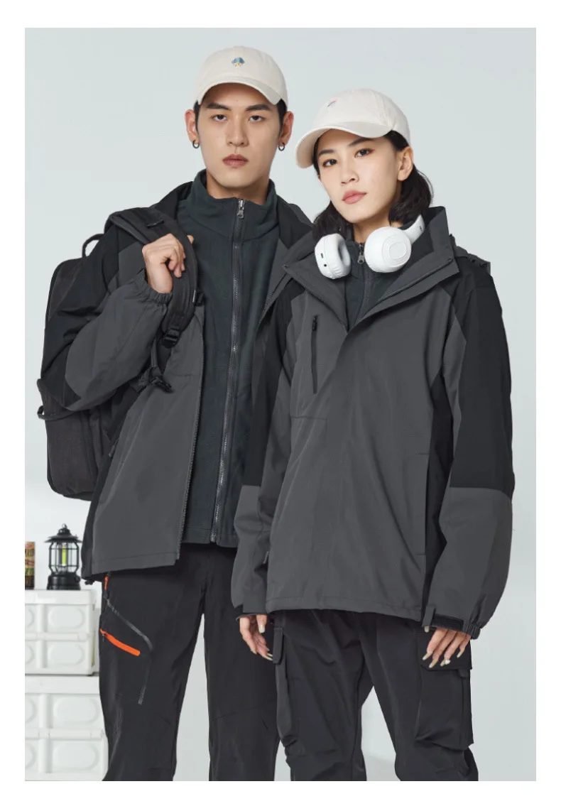 Three-in-One Winter Fleece Jacket for Men and Women Two-piece Detachable Windproof Waterproof Warm Thickened Stand Collar Zipper