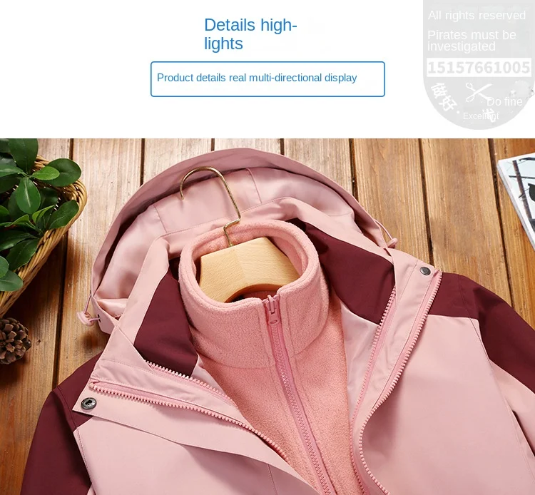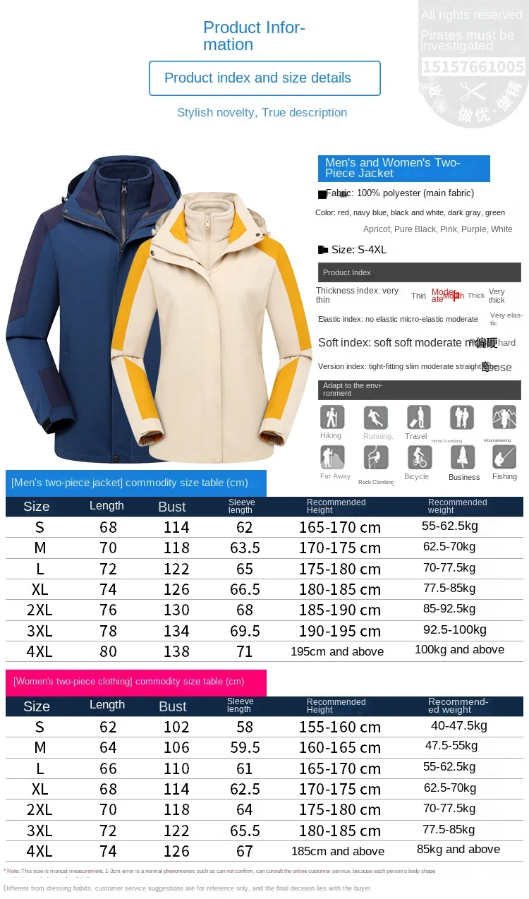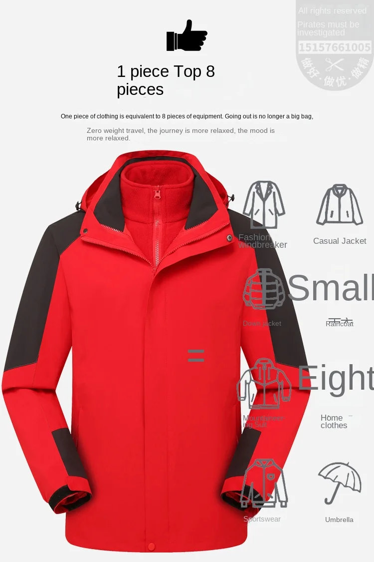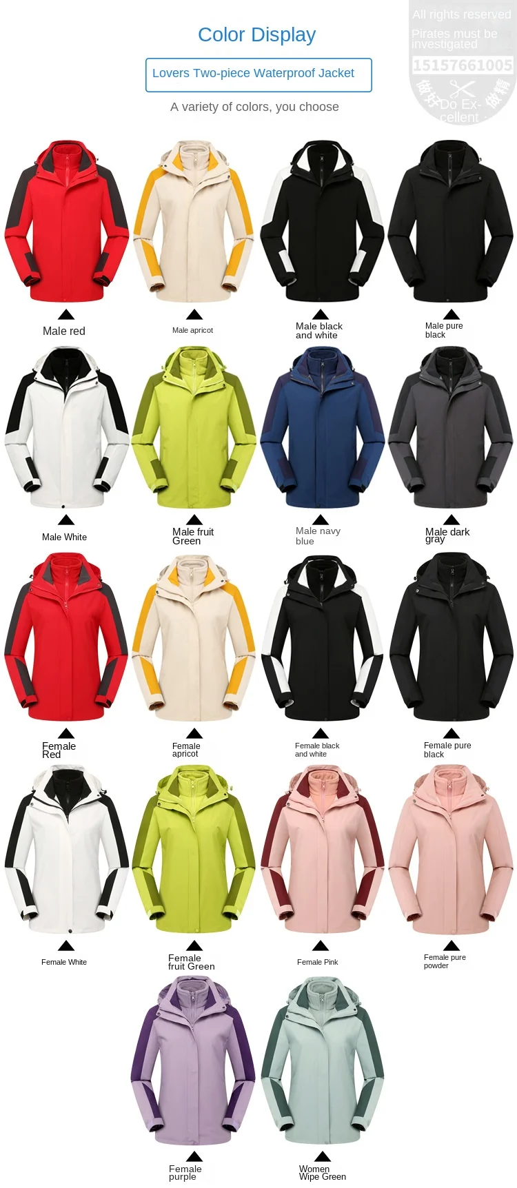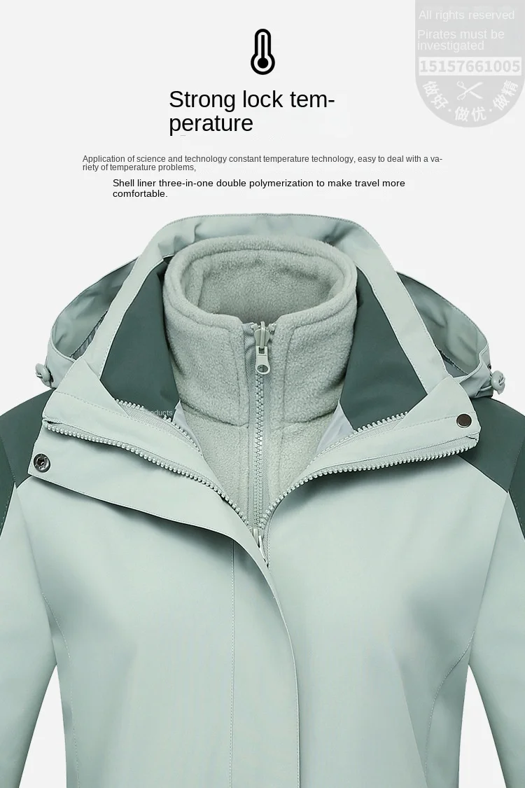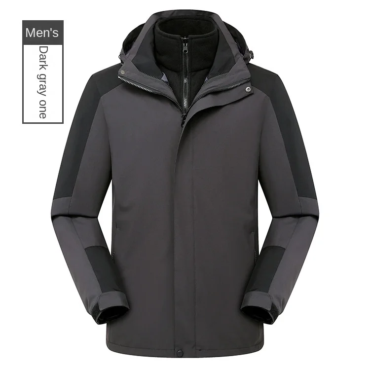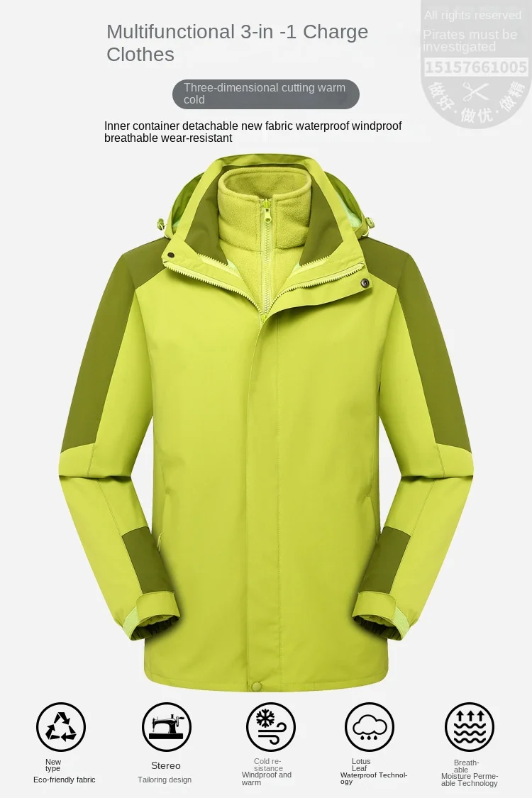 Two-Piece Charge Coat for Men Women Three-In-One Detachable Fleece Liner Windproof Waterproof Winter Coat Long Zipper