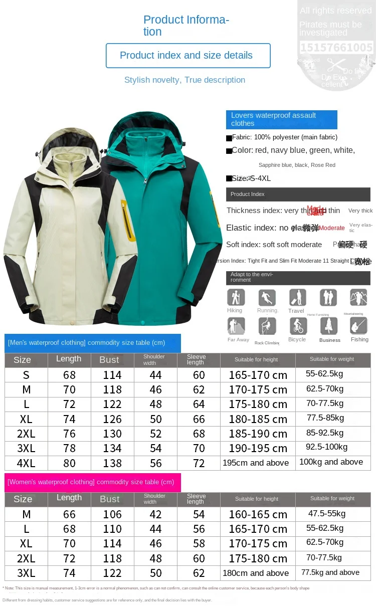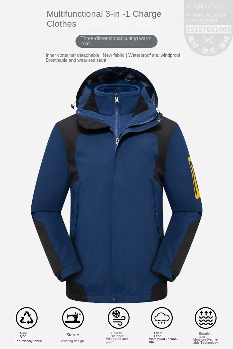 Two-Piece Three-In-One Outdoor Assault Clothing for Men Women Autumn Winter Polar Fleece Liner Waterproof Windproof Knitted