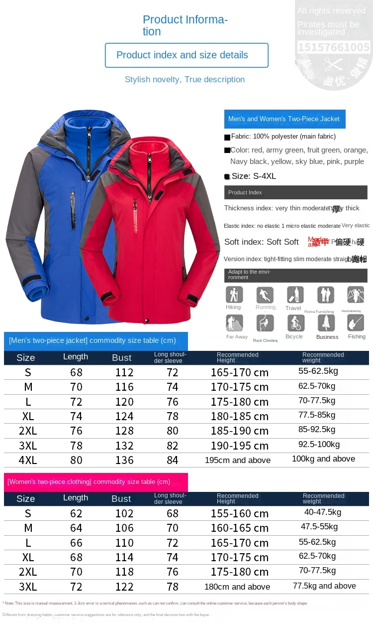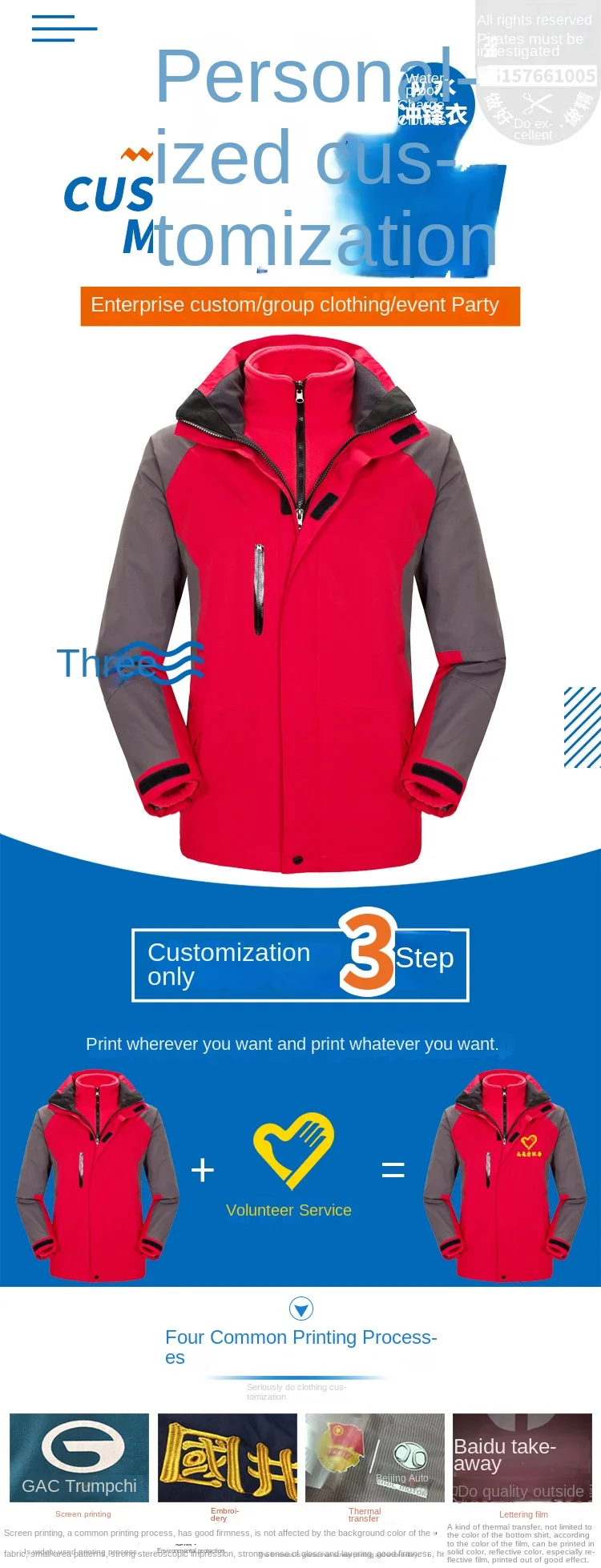 Two-Piece Three-In-One Outdoor Assault Clothing for Men Women Fleece-Lined Waterproof Mountaineering Work Jacket Custom Hiking