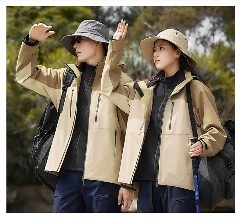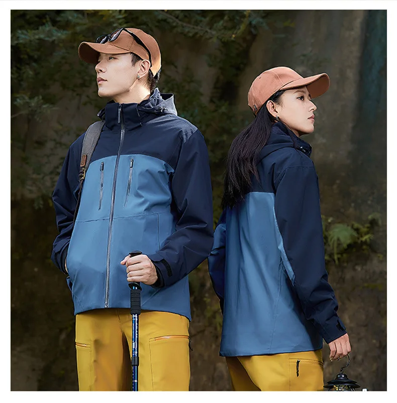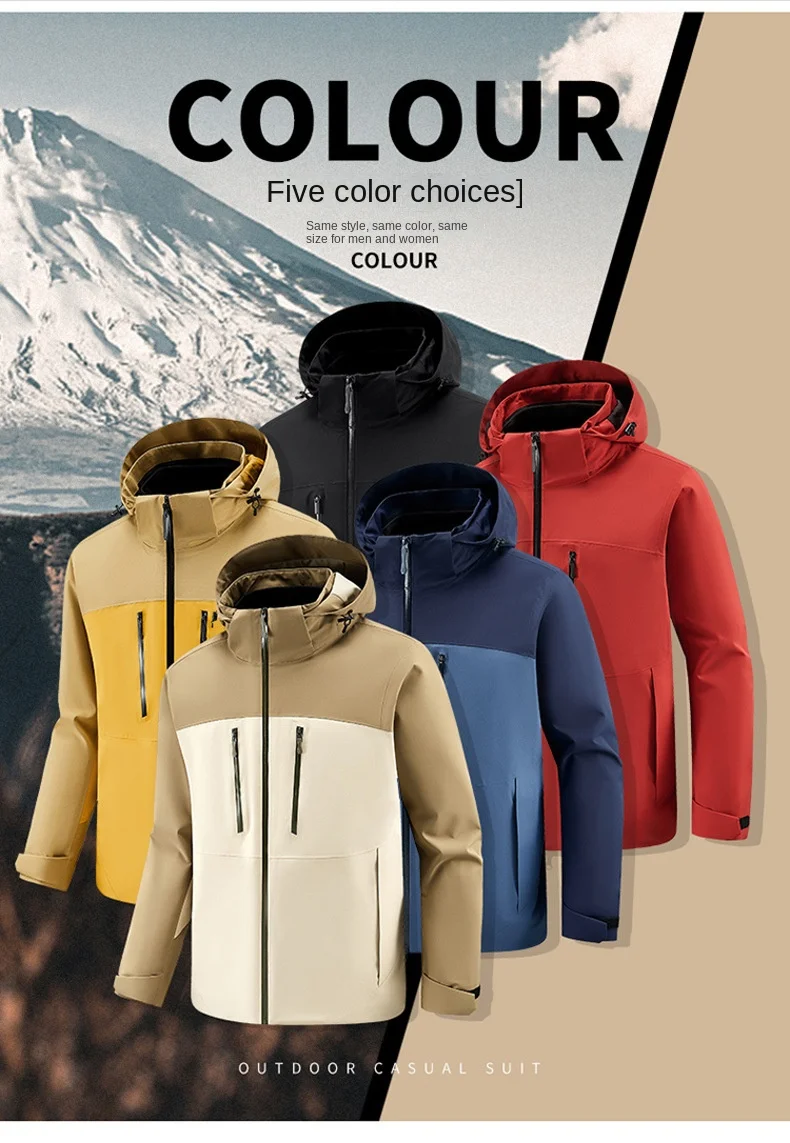 Unisex Winter Hooded Stand Collar Soft Shell Jacket Knitted Fabric Waterproof & Windproof Spandex/Polyester Material