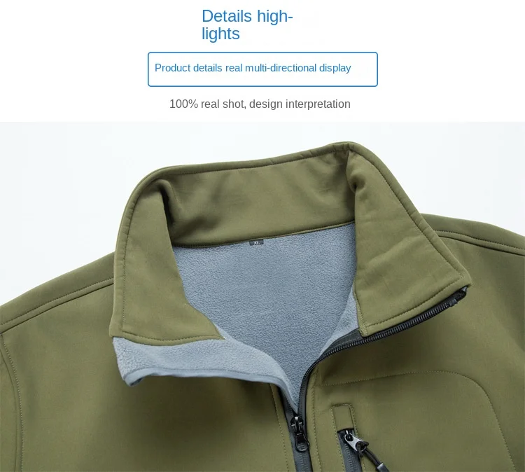 Winter New Outdoor Men's Bomber Jacket Single Layer Standard Thickness Casual Waterproof Canvas Soft Shell Zipper Front Dyed