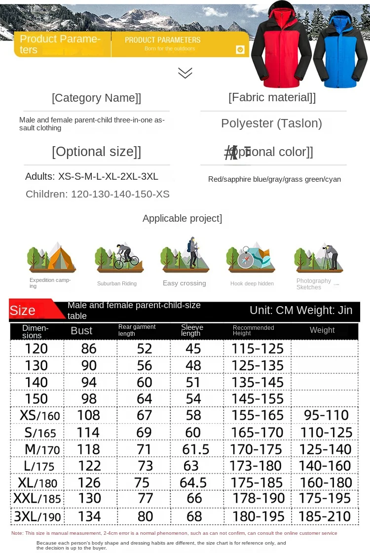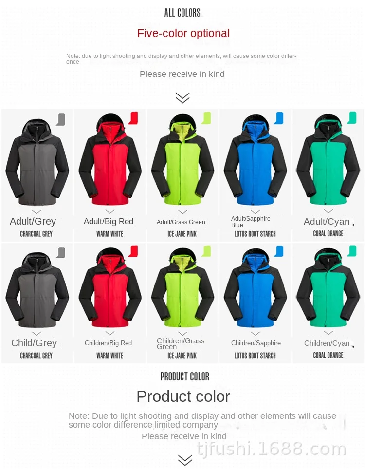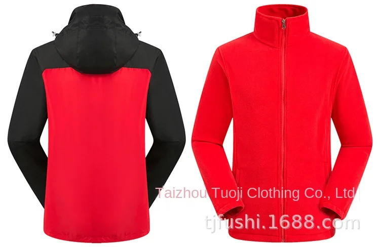 Women Parent-Child Outdoor Charge Three-in-One Jacket Set Detachable Fleece-Lined Thickened Two-Piece for Autumn Winter
