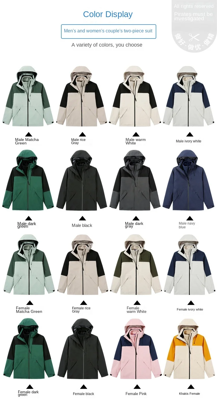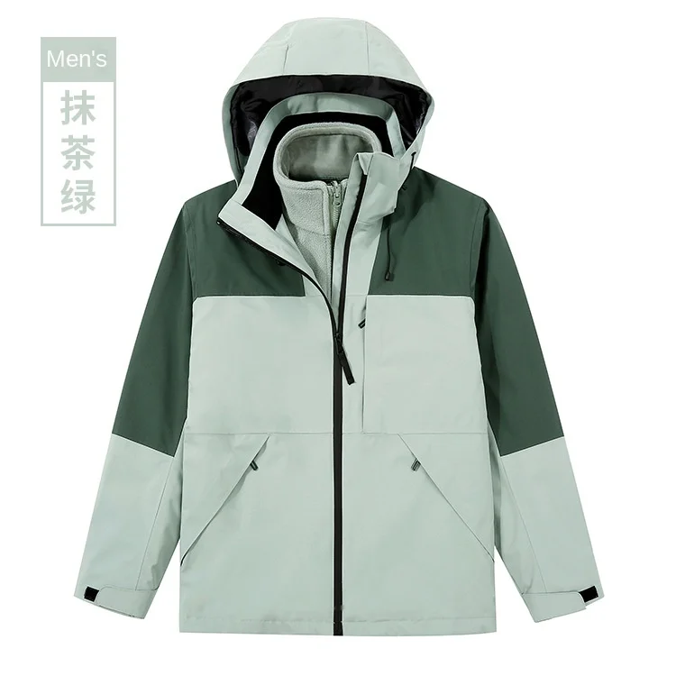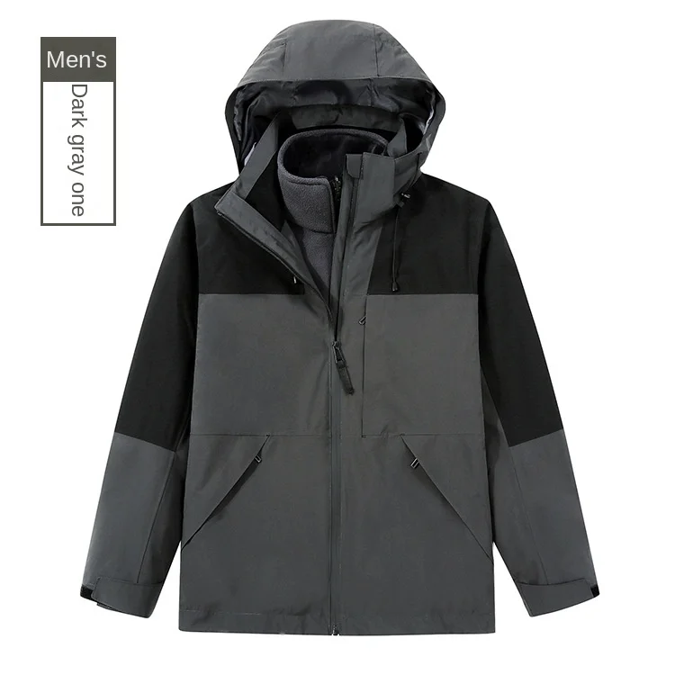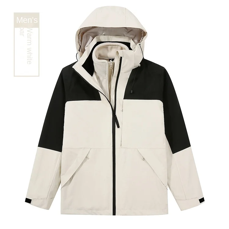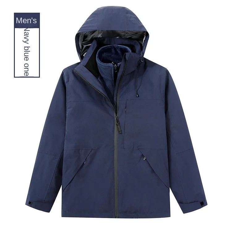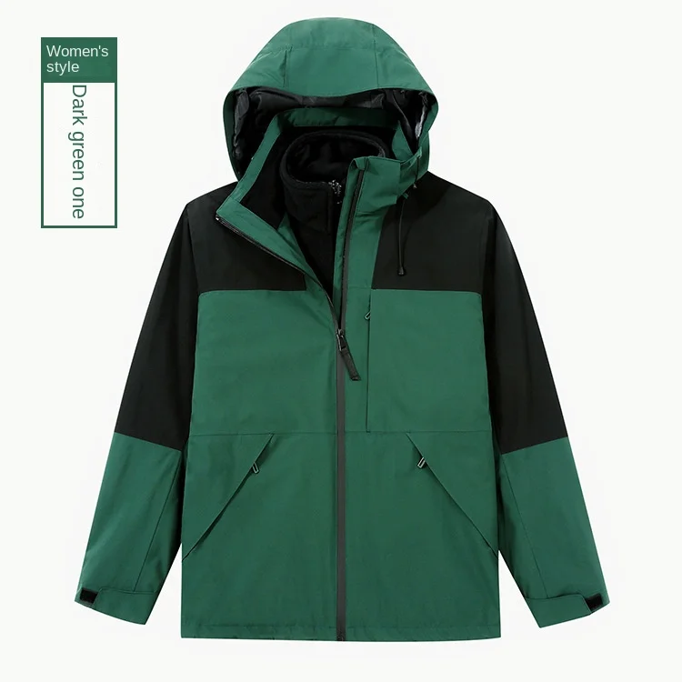 Women's Men's Three-in-One Winter Work Clothes Warm Waterproof Breathable Outdoor Two-Piece with Zipper Closure Logo Embroidery
