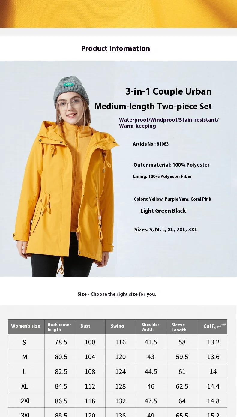 Women's Waterproof Windbreaker Jacket Mid-Length Stand Collar Rain Jacket Removable Inner Raincoat for Outdoor Fall Winter Wear